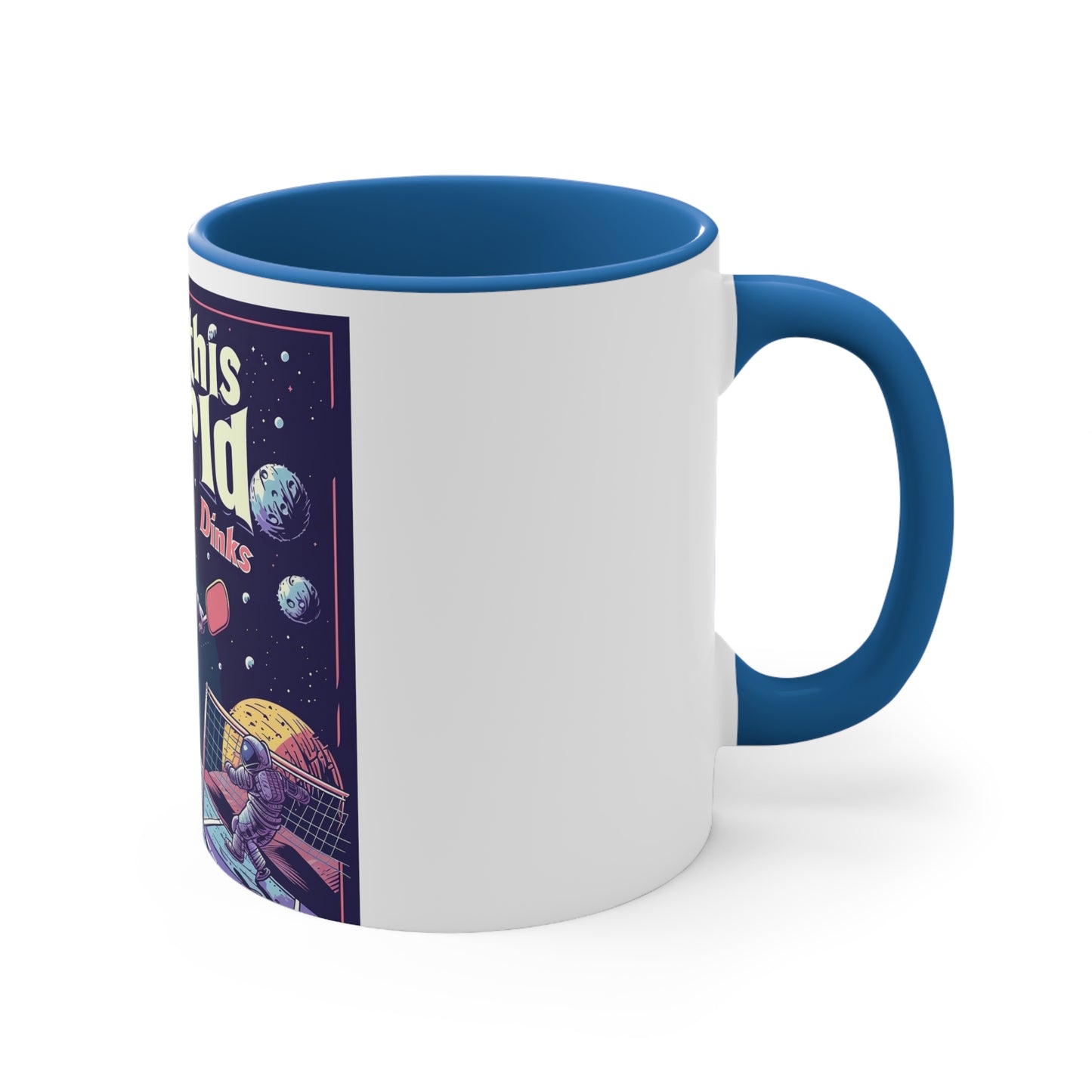 Bring the cosmos to your coffee break with our "Galactic Game Point Accent Coffee Mug." Featuring an imaginative pickleball space match, this 11oz mug is a must-have for those who dream of dinking amongst the stars.