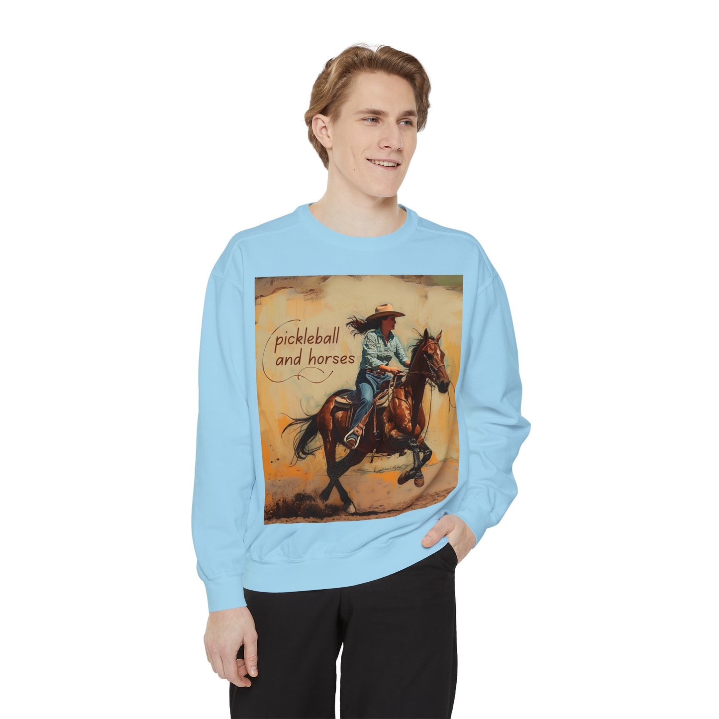 Pickleball and Horses – Unisex Cozy Pickleball Sweatshirt