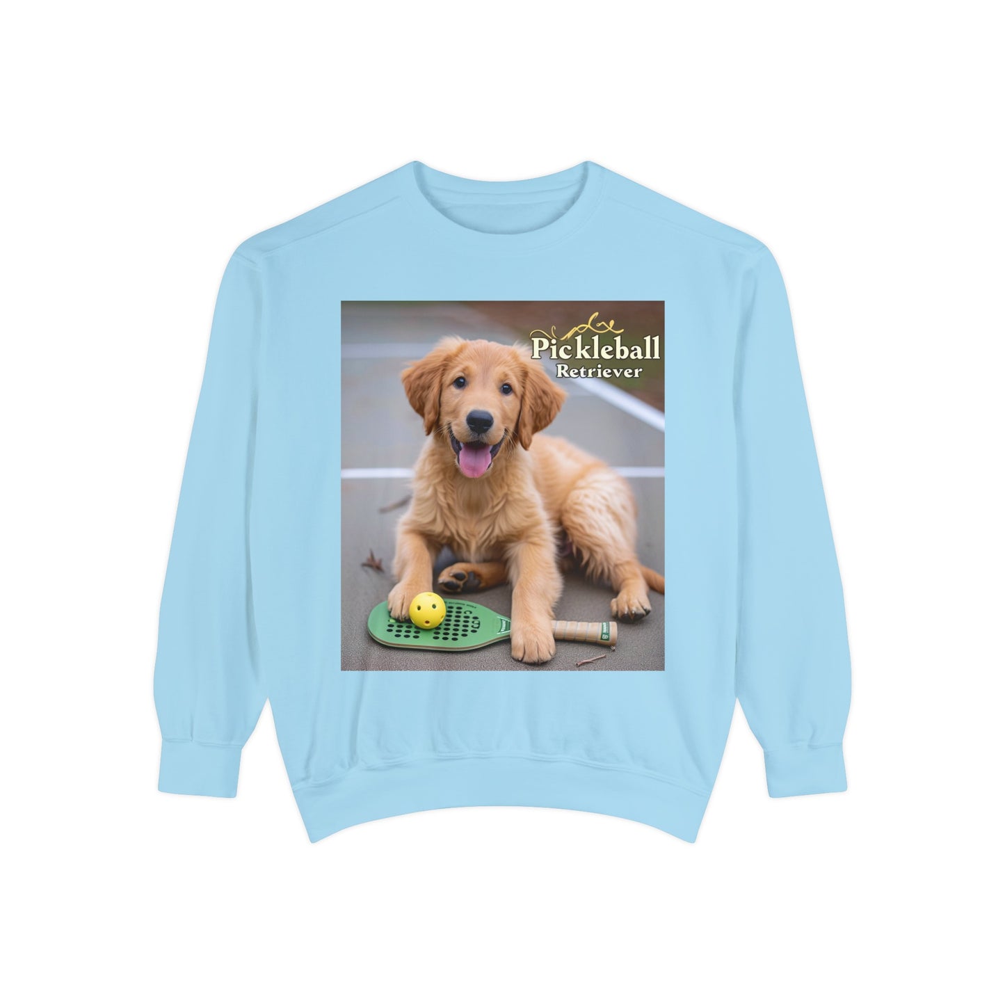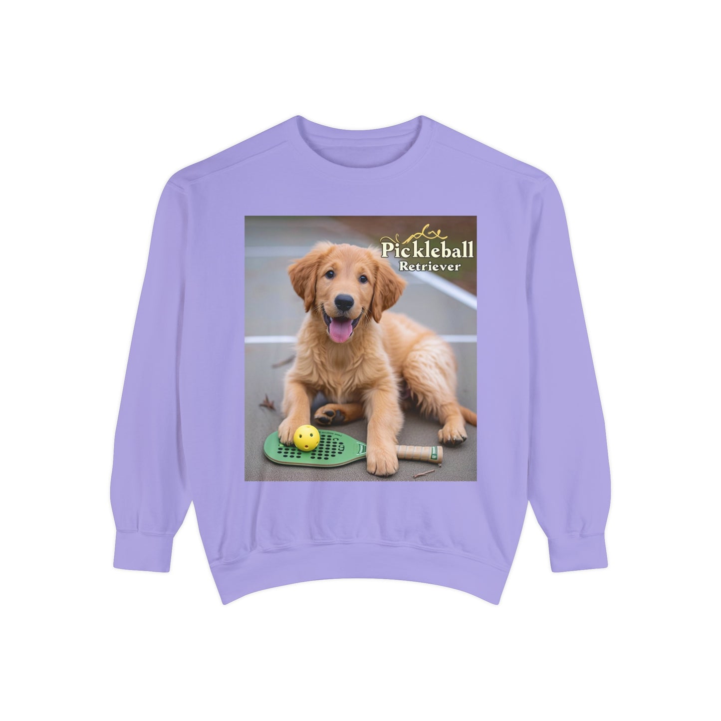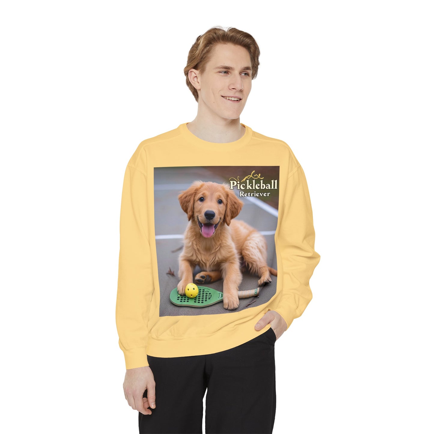 Combine your love for Pickleball with the charm of man's best friend in our "Pickleball Pup Partner" Cozy Sweatshirt. This comfy pullover, featuring an adorable golden retriever ready for game time, is the perfect addition to the wardrobe of any Pickleball enthusiast with a soft spot for puppies.