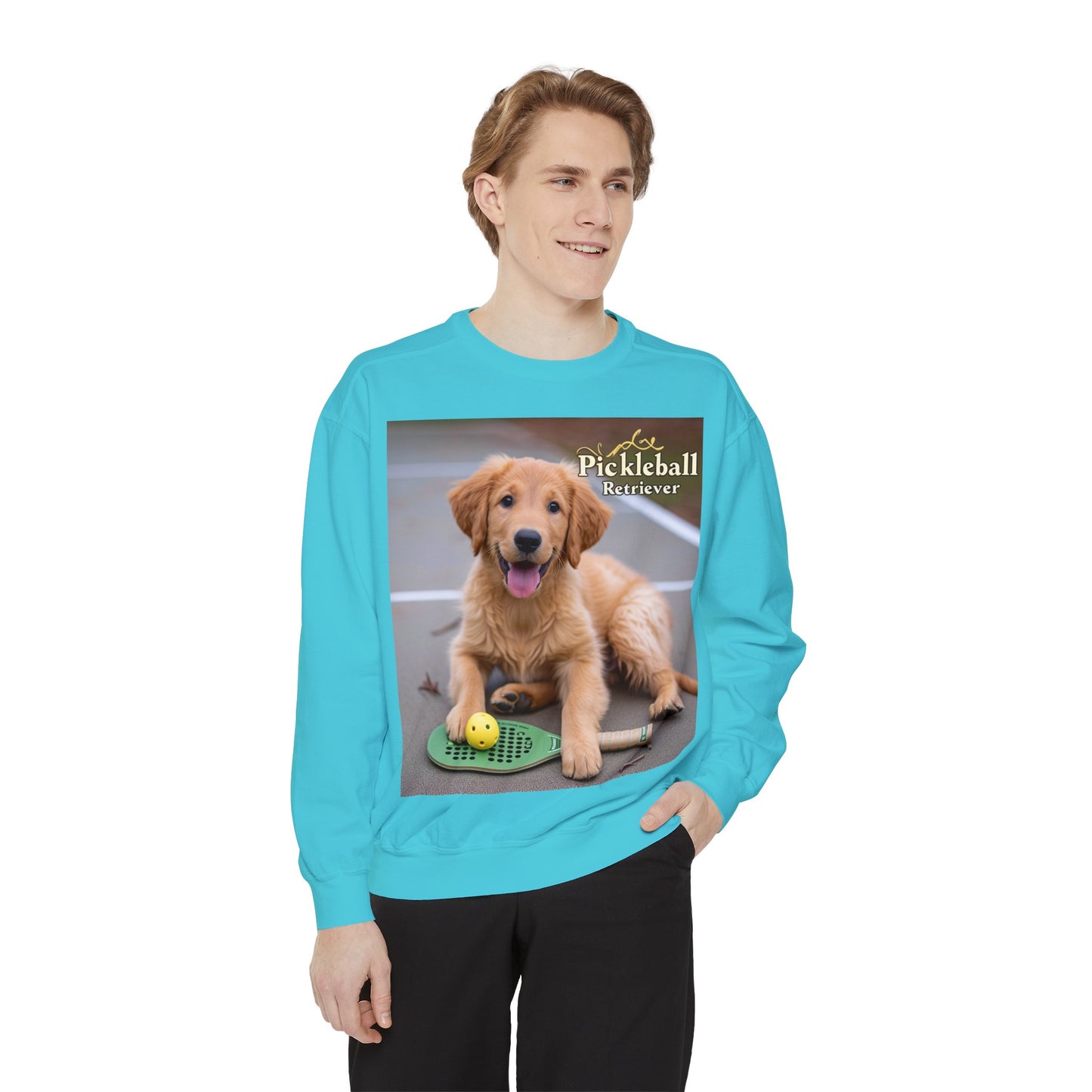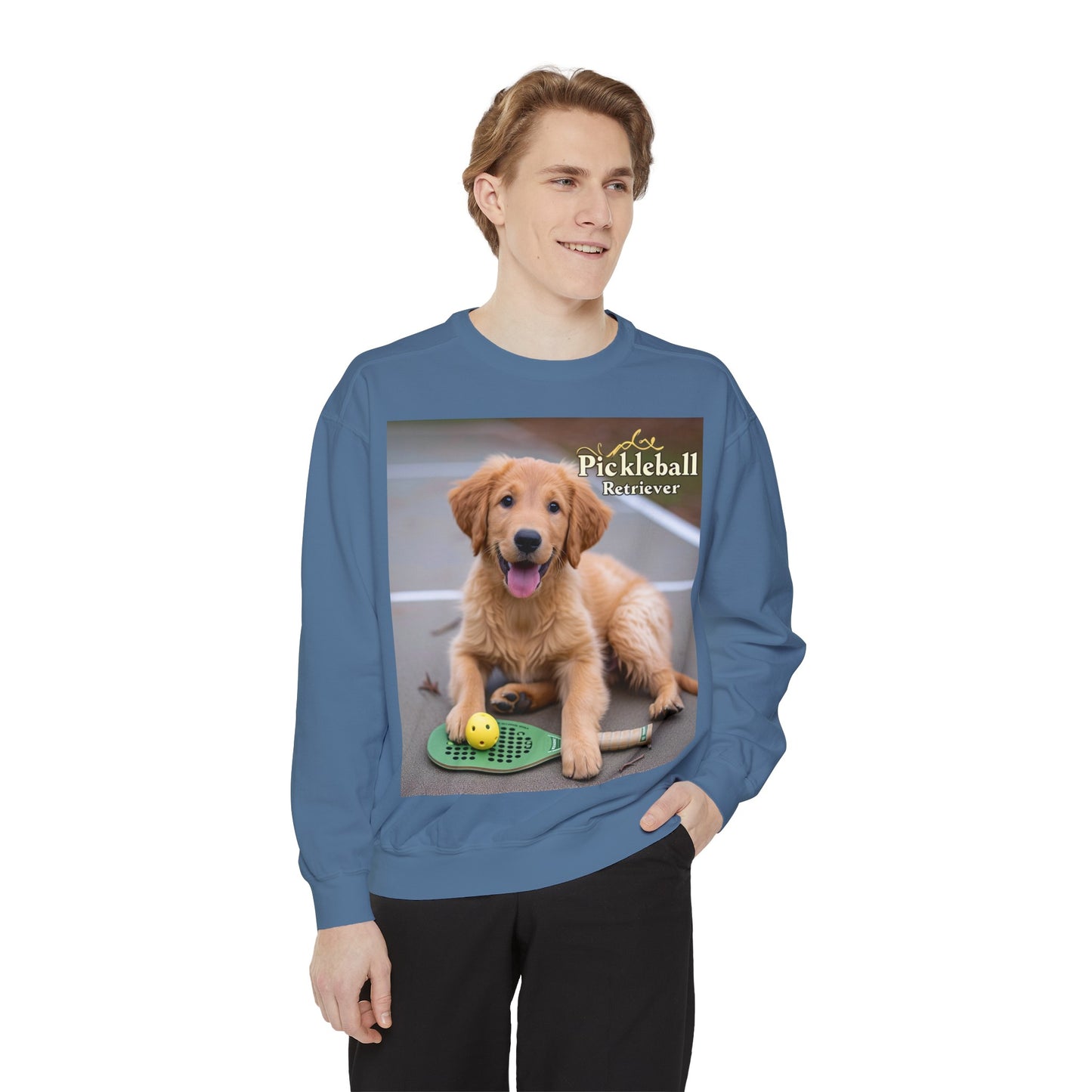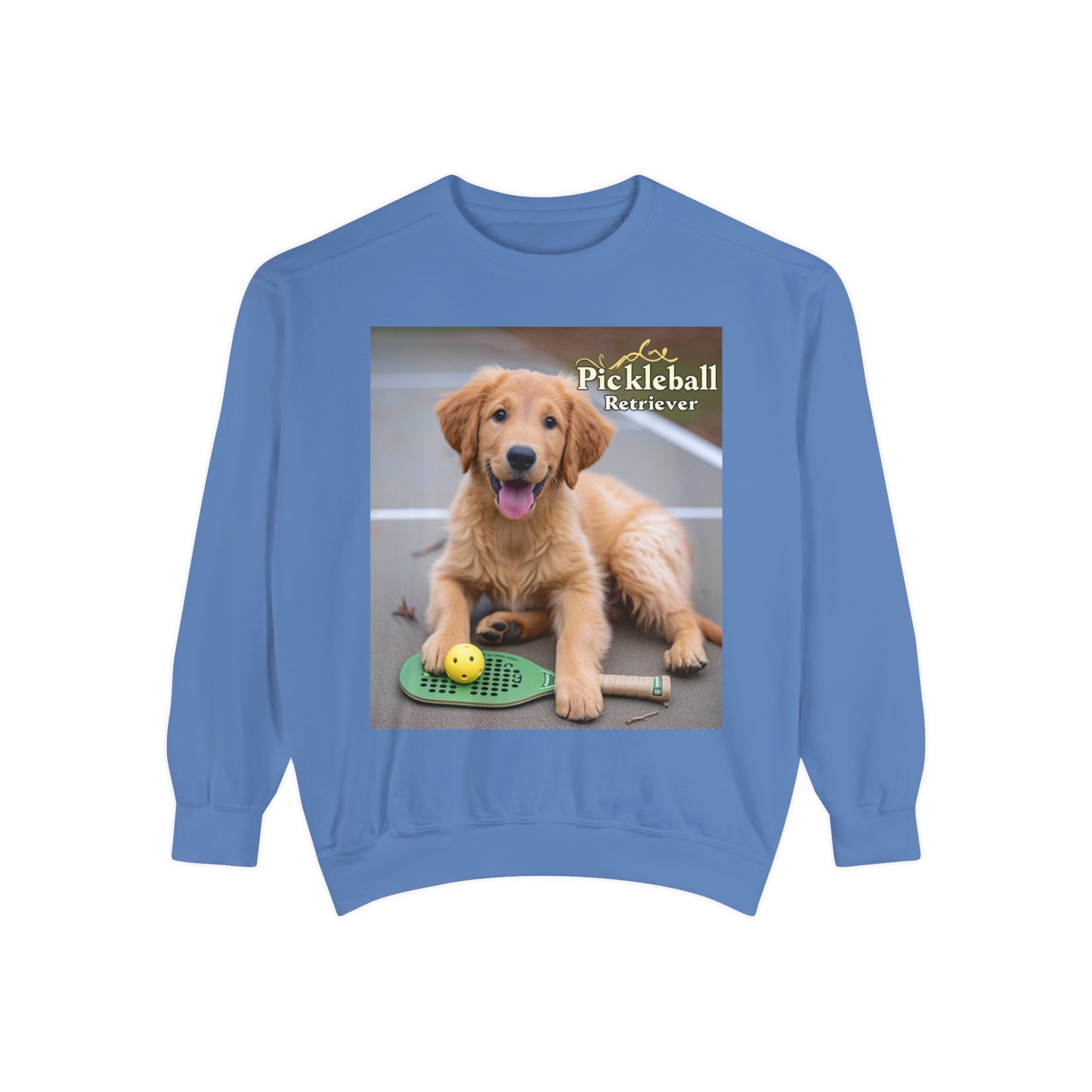 Combine your love for Pickleball with the charm of man's best friend in our "Pickleball Pup Partner" Cozy Sweatshirt. This comfy pullover, featuring an adorable golden retriever ready for game time, is the perfect addition to the wardrobe of any Pickleball enthusiast with a soft spot for puppies.